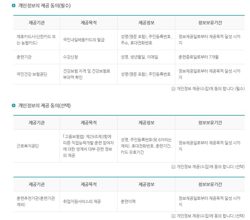 이렇게 해서 카드 발급이 완료되면 140시간 미만 수업은 HRD-Net에서 수강신청을 하면 되고, 140시간 이상 수업시간에 대한 수업은 추가로 2주 정도의 고용센터 상담을 진행해야 합니다. 그렇기 때문에 140 이상 수업 참여를 희망하면 2주 추가 상담을 계산하셔서 교육 참여 문의를 진행해야 합니다.