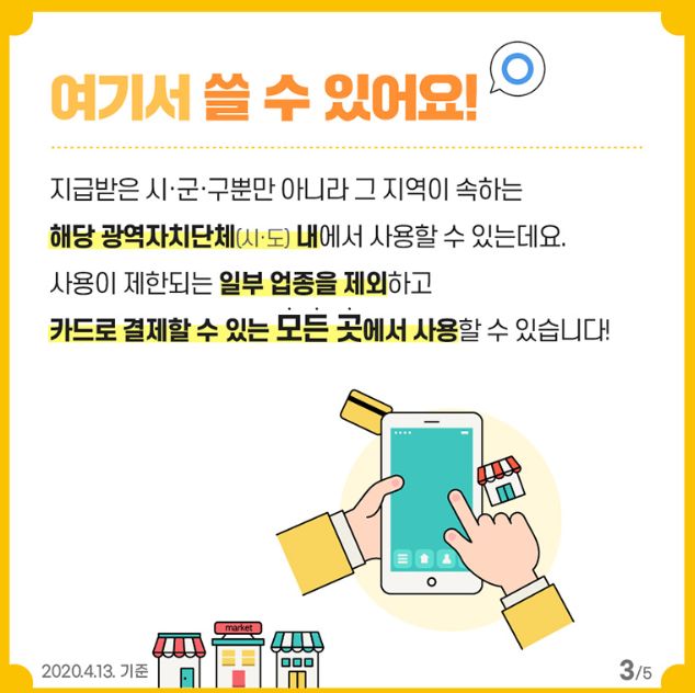 아동돌봄쿠폰은 2020년 3월 말까지 아동수당을 받은 전국의 263만 명의 아동(만 7세 미만), 대략 200만 가구에 아동 1인당 40만 원씩 아이의 보육에 필요한 자금을 각 지자체에 따라 전자상품권, 지역 전자화폐, 종이상품권을 통해 국비로 긴급 지원하는 사업입니다. 저도 지난 4월 4일 아동돌봄쿠폰 지급에 관한 문자를 처음 받은 후에 14일 최종적으로 아동돌봄쿠폰이 지급됐다는 문자를 받았습니다.
