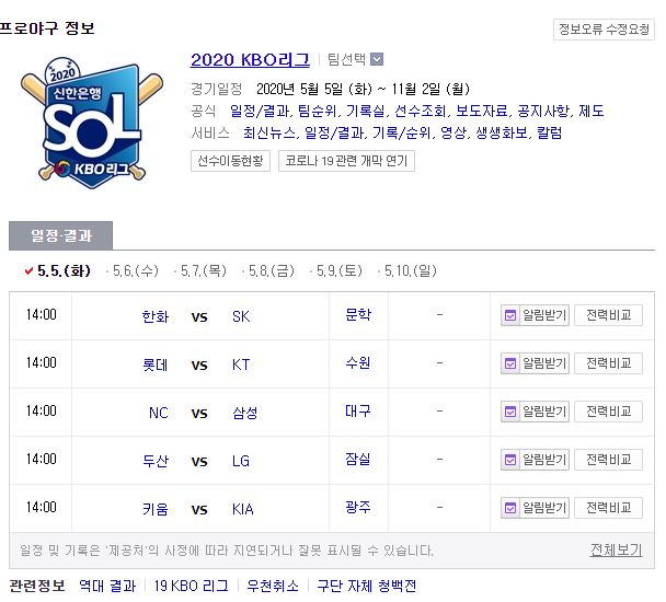 아무쪼록 생각지도 못한 코로나 19 사태로 국가가 혼란에 빠졌지만 다행히도 빠른 시간에 제자리를 찾아가고 있어 다행입니다. 그리고 야구팬으로서 어쩔 수 없는 현실을 받아들여야 했지만 한편으론 아쉬웠습니다. 5월 5일 드디어 2020 프로야구 일정과 개막 등이 나왔으니 부디 별 탈없이 선수들이 노력한 만큼 좋은 결과와 경기력으로 올해도 많은 사랑을 받는 2020 프로야구가 되었으면 합니다.
