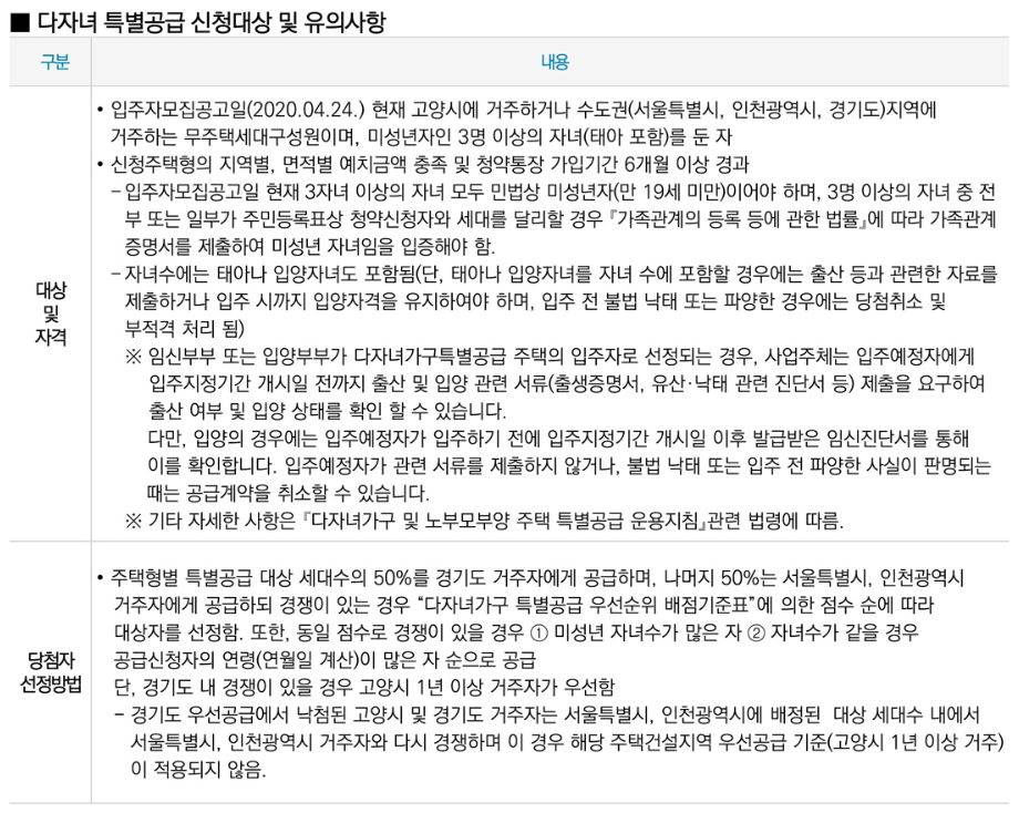 ▷자녀(임신, 입양 포함)가 있으면 1순위 우선공급
