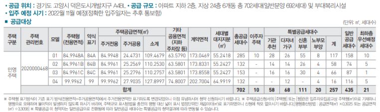 ▷전용면적 및 타입: 84㎡/84C 21세대(특별공급 10세대, 일반분양 11세대)