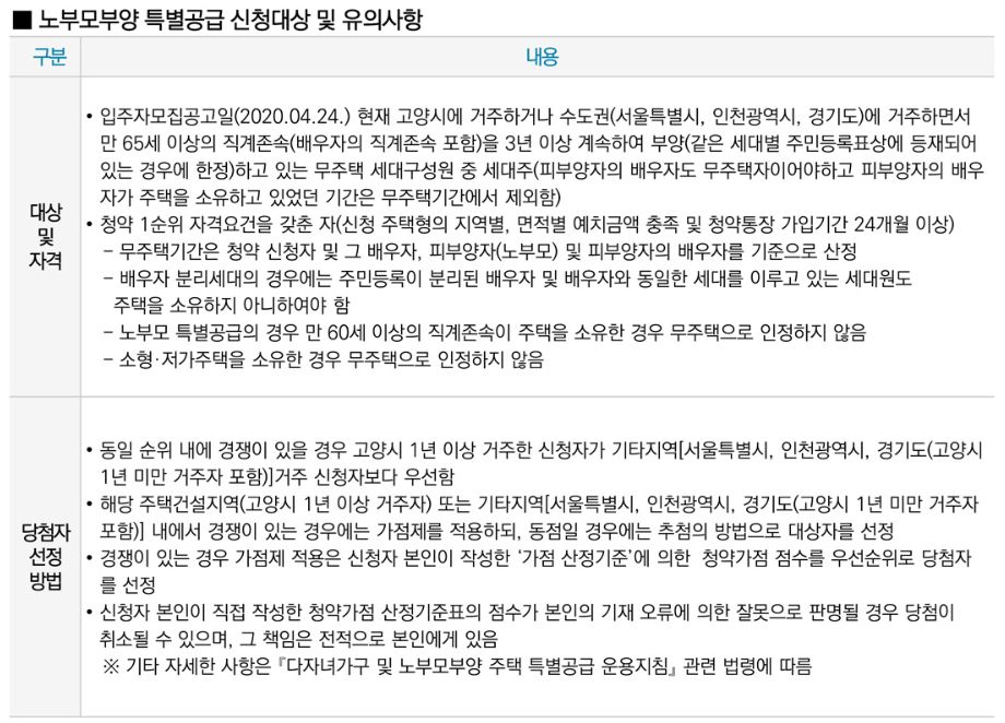 ▶노부모 부양 특별공급(리버파크자이 20세대, 리버포레자이 9세대)