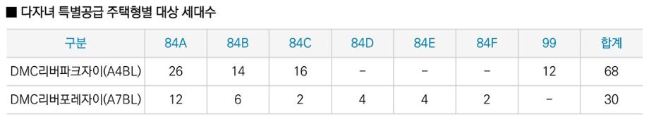 ▶다자녀가구 특별공급(리버파크자이 68세대, 리버포레자이 30세대)