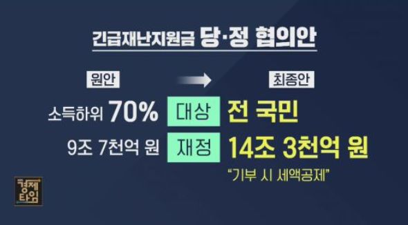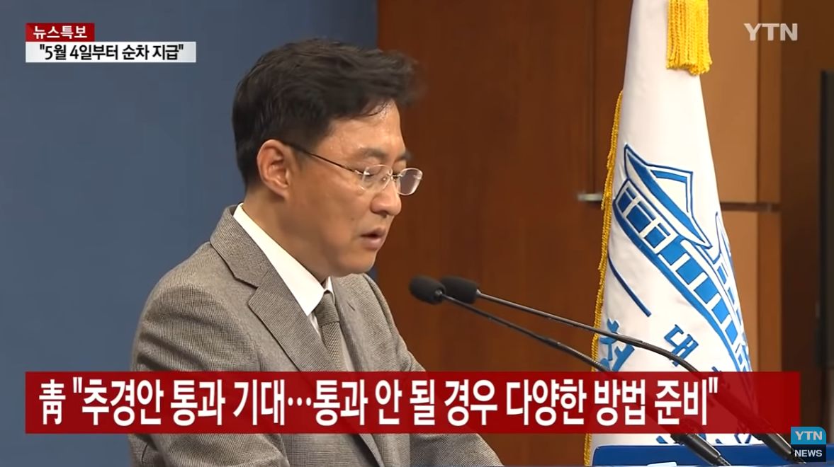 만약 3개월 안에 정부재난지원금을 신청하지 않았다면 기부금으로 간주하는 내용의 특별법안도 발의가 되었습니다. 그리고 정부재난지원금에 대한 국회의 추경안 합의에 실패하면 5월 15일 이후 대통령 권한으로 '긴급재정명령권'을 발동하고 전 국민 지급에 이상이 없게 할 계획입니다.