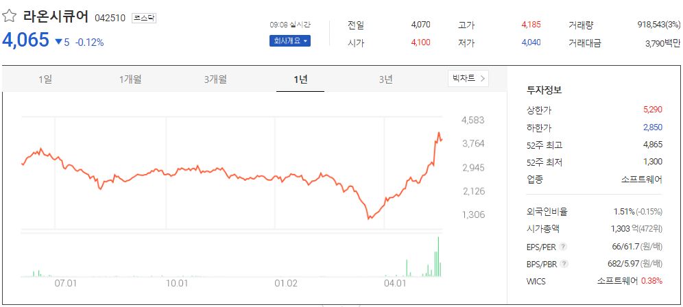 라온시큐어는 1998년 4월 16일 설립되었습니다. 금융, 공공기관 및 일반기업을 대상으로 모바일 보안솔루션, PC보안, 국제생체인증 표준 FIDO 기반 생체인증 솔루션, IOT 기반 솔루션과 서비스 등을 주요 사업으로 영위하고 있습니다. 최근 FIDO 생체인증 기술과 블록체인 기반의 신원인증 플랫폼 옴니원(OmniOne)을 선보이며, 신규 사업에 집중하고 있습니다.