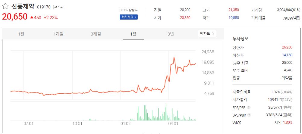 신풍제약은 올 2월부터 상승세를 보이고 있습니다. 신풍제약의 파라맥스정과 과립은 미국 FDA에 희귀 의약품으로 지정이 되었고, 세계 보건기구 필수의약품 목록도 등제되어 있습니다.