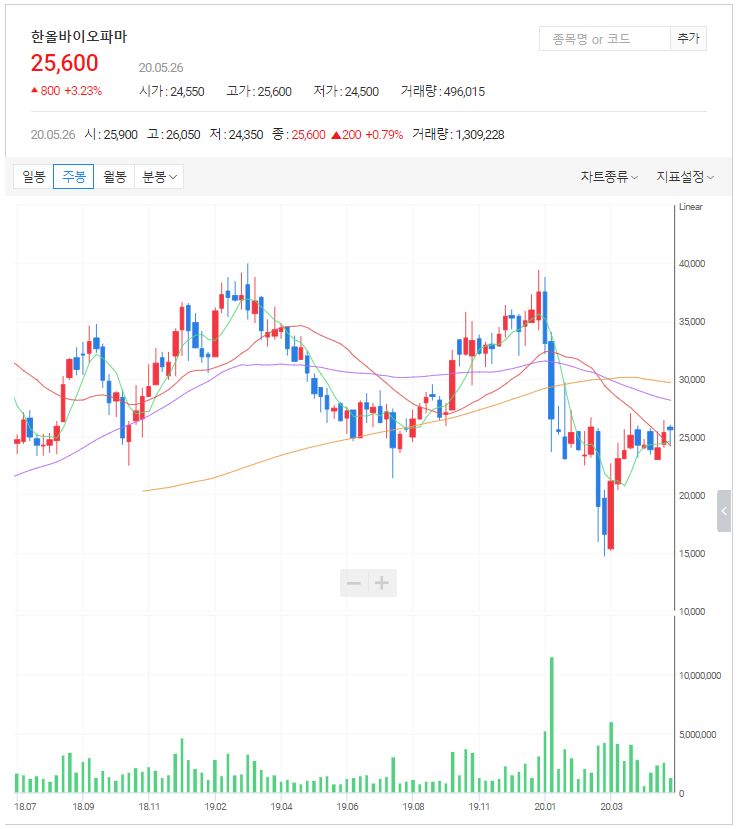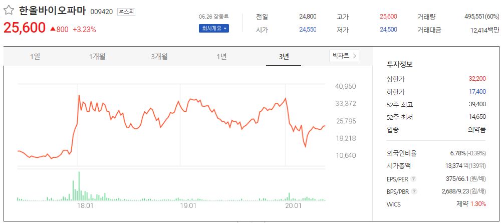 한올바이오파마는 메르스 사태 당시 치사율을 줄여주는 '인터페론'에 대한 특허를 보유하고 있어 렘데시비르 관련주로 분류가 되었습니다. 해외에서 진행된 코로나 19 바이러스 환자들을 대상으로 진행한 탐색 연구 결과 면역 물질인 '인터페론'을 처방했을 때 바이러스 치료기간을 7일까지 단축시킨 것으로 나타났습니다.