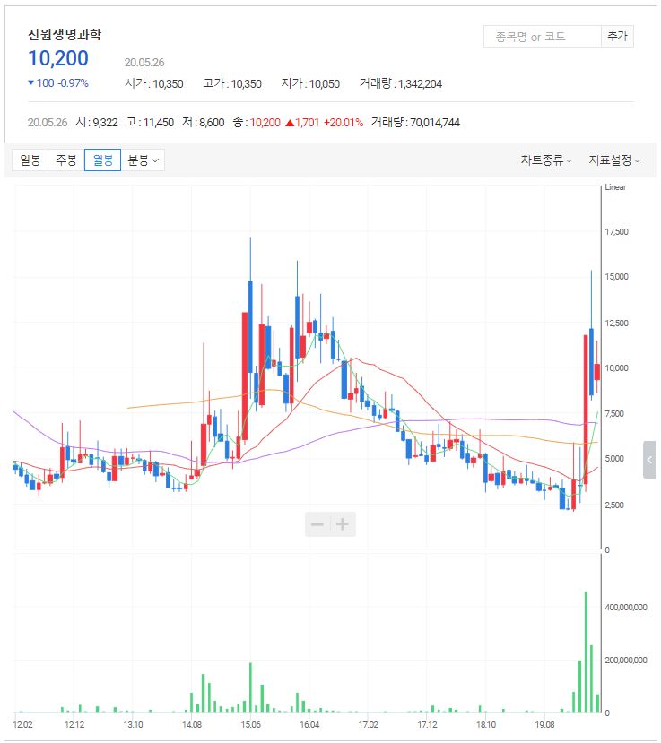 진원생명과학이 렘데시비르 관련주로 주목받는 이유는 2대 주주이자 사업 파트너인 이노비오가 질병관리본부와 함께 코로나 19 바이러스 백신 개발을 진행한다고 알려져서 상승세를 보이고 있습니다.