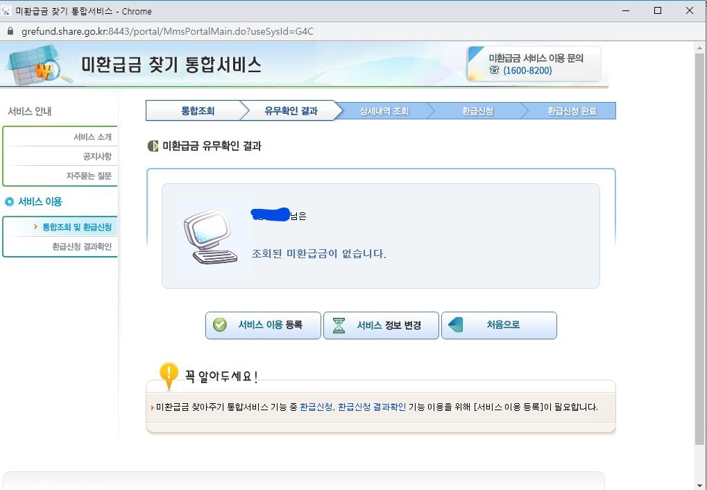 주민등록번호 입력시 '-'는 없이 숫자만 입력하면 됩니다. 저도 혹시나 하는 기대감에 조회를 해봤지만 '입력하신 주민등록번호(사업자등록번호)는 미수령환급금이 존재하지 않습니다.'라고 나와서 조금은 아쉽습니다.
