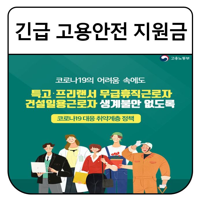 지금까지 코로나 19로 인한 정부의 지원정책들은 많이 나왔습니다. 최근에 긴급재난지원금, 재난기본소득, 특수고용·프리랜서 특별지원금, 자영업자 저금리 대출, 자영업자 생존자금 지원 등 많은 정책들로 어려움을 겪고 있는 국민들을 돕고 있는데요, 긴급 고용안정 지원금은 코로나 19로 인해 소득과 매출이 감소하였지만 고용보험의 보험을 받지 못하는 취약계층의 생계안정을 위한 정부의 지원책입니다.