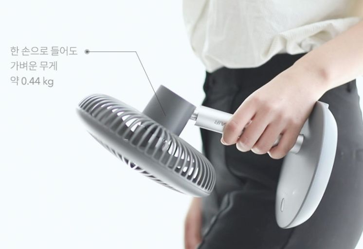 주요 스펙은 5,000mAh의 대용량 배터리를 탑재하여 최대 12시간 작동 가능, 90도 좌/우 자동 회선 기능, 45도 상/하 각도 조절 기능, 4단계 풍속 조절 가능, 센스 있게 이동시 잡을 수 있는 소가죽 핑거 스트랩도 달려 있습니다. 인터넷 최저가는 29,800원입니다.