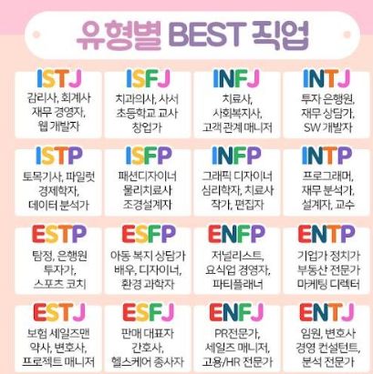 MBTI 성격유형 검사 결과가 E형이던 I형이던, S형이던 N형이던, 또 T형이던 F형이던, J형이던 P형이던 하나의 유형에 자신과 타인을 끼워 넣는 사고에 갇혀서는 안 됩니다. 참고용으로 자신의 긍정적인 부분을 부각하고, 부정적 부분은 발전시키기 위한 용도로 사용되어야 합니다.