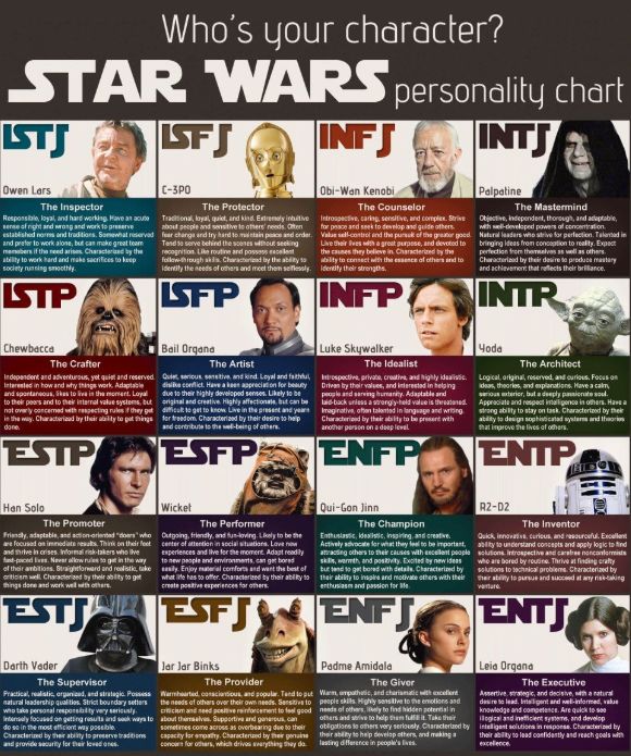 | 느긋함, 관용적이며 타협을 잘함, 현실적 문제 해결에 능숙함. | 호기심이 많음, 개방적, 구체적인 사실을 중요시함. | 상상력이 풍부, 순발력이 뛰어남, 일상적인 활동에 지루함을 느낌. | 박학다식고 독창적임, 끊임없이 새로운 시도를 함. |