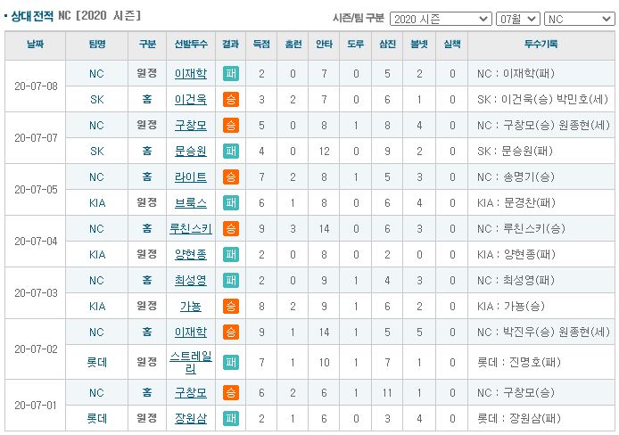 NC, 타격 OPS 0.851, 우완 상대 OPS 0.825, 최근 1주일 OPS 0.753 / 구원 평자 6.71, WAR 0.05