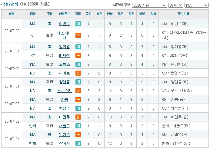 ▷KIA, 타격 OPS 0.756, 우완 상대 OPS 0.761, 최근 1주일 OPS 0.672 / 구원 평자 4.91, WAR 3.22
