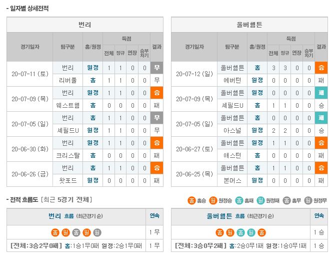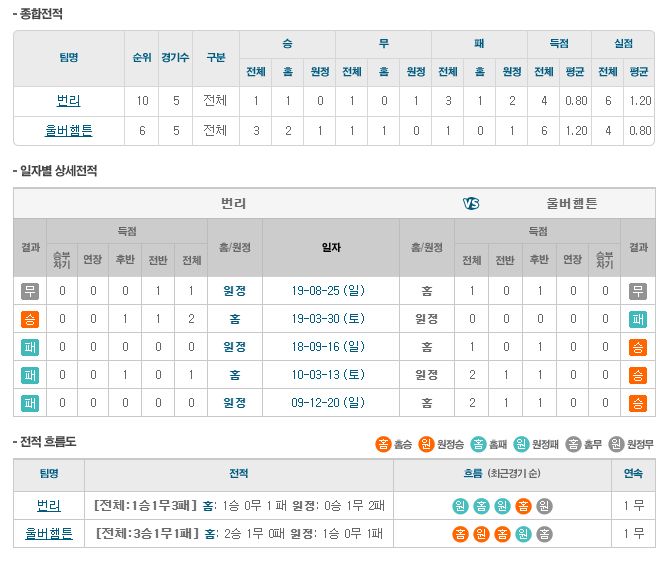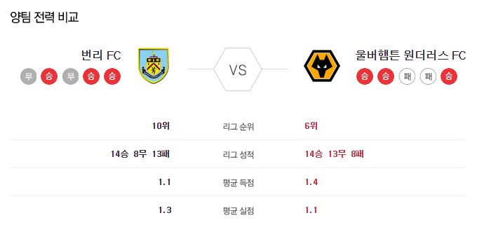 ▶번리 vs 울버햄튼 5경기 전적 1승 1무 3패(번리 홈 1승 1패)