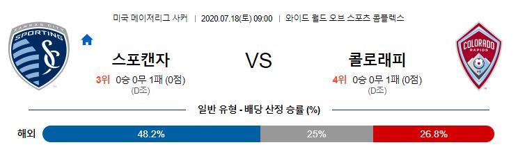 이번 경기는 중립구장인 ESPN 와이드월드오브스포츠 컴플렉스에서 열리는 토너먼트 조별예선입니다. 캔자스시티는 리그 중단 전 2경기에서 벤쿠버와 휴스턴 등 하위권 팀들을 완파하며 2연승을 하였습니다. 미네소타와의 토너먼트 첫 경기에서도 풀리도가 선제골을 뽑아내며 쉽게 이기는 듯 했지만, 골키퍼 팀 멜리아가 퇴장을 당하며 수세에 몰려서 두 골을 내리 실점하며 무너졌습니다. 빅리그에서 온 윈스턴 리드는 이번 경기 데뷔 할 가능성이 있습니다. 콜로라도는 DC유나이티드, 올랜도 등을 꺾으며 2연승 중이고, 새롭게 영입한 유네스 남리가 빠르게 적응하면서 팀의 상승세에 일조를 하고 있습니다. 하지만 토너먼트 첫 경기에서는 솔트레이크에 무기력한 모습을 보이며 0-2 패배를 했습니다. 두 팀 모두 이번 경기 패한다면 탈락이 유력해지기 때문에 승리에 대한 동기부여가 어느팀이 높을지가 관건입니다. 겨울 이적시장을 통해 전력을 알차게 보강한 캔자스시티가 근소한 우위를 점하고있지만, 지난경기 퇴장을 당한 부동의 주전 골키퍼 멜리아가 결장하는 경기에서 수비조직력 유지는 쉽지않아 보입니다. 윈스턴 리드가 합류하지만 수비 조직력 측면에서는 오히려 더 좋지않은 결과로 이어질 수 있어 보입니다. MLS를 폭격하고있는 풀리도가 이번 경기에서도 활약을 이어갈 수 있겠지만, 리드를 유지할 수 있는 힘은 부족해보이는 경기입니다.