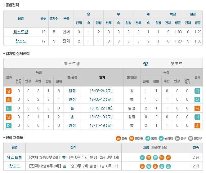 ▷웨스트햄, 홈에서 5승 3무 9패 / 평균 1.5득점, 1.8실점