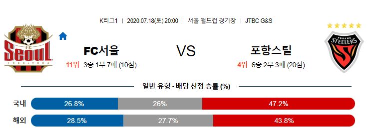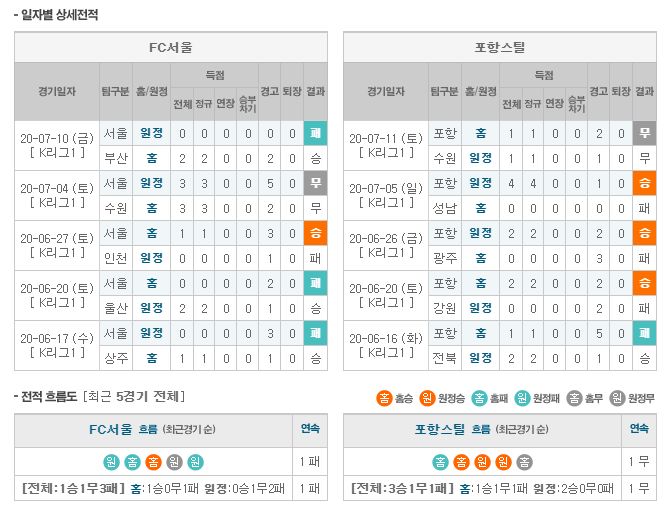 ▷서울 홈 성적 : 5전 2승 3패 (홈 무실점 40%, 홈 무득점 40%)