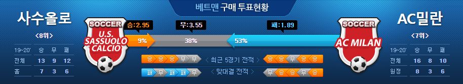 ▶사수올로 vs AC밀란 5경기 전적 2무 3패(사수올로 홈 2패)