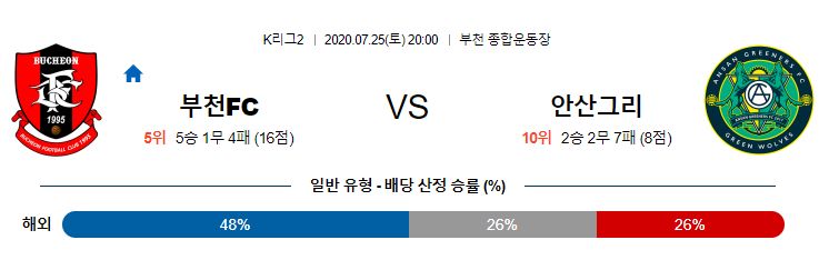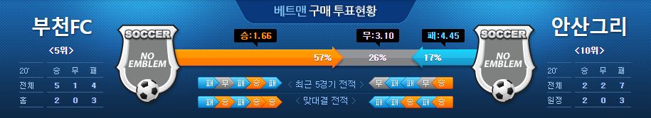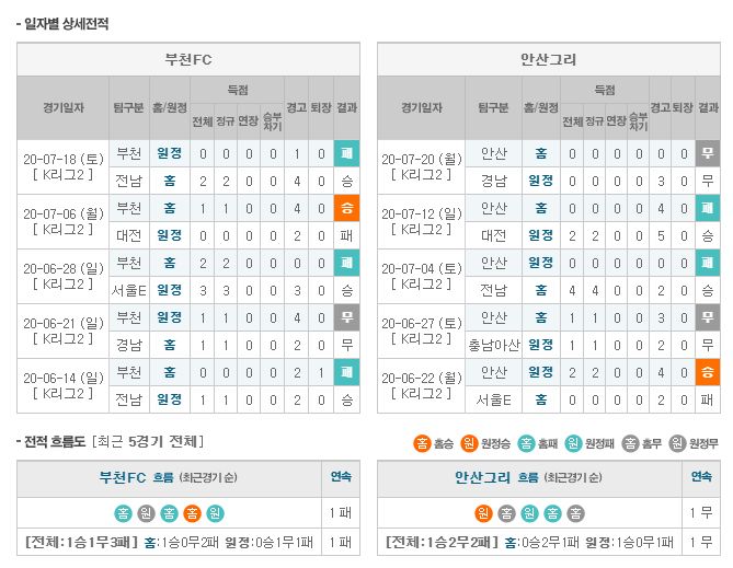 ▶부천FC vs 안산 그리너스 5경기 전적 3승 2패(부천FC 홈 2패)
