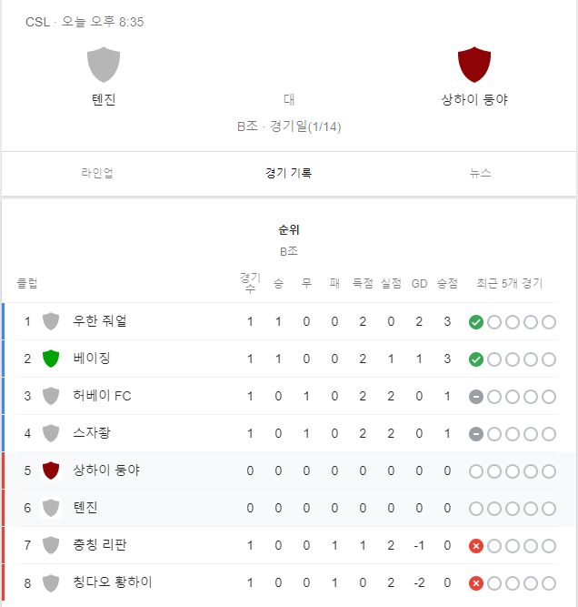 톈진 테다는 팀의 공격을 이끌던 스트라이커 바그너가 개인적 사유로 갑작스럽게 팀을 떠나며 바그너의 공백을 채우는 게 급선무입니다. 당장 선수 구성만 본다면 상하이상강과의 전력격차가 큰 상황에서 바그너의 공백은 기존 선수들로 매울 수 없는 차이 입니다. 상하이 상강은 아르나우토비치가 합류가 늦어서 이번 경기에 결장할 가능성도 존재하지만, 이미 오스카와 헐크, 로페즈의 조합으로 상대에게 위협을 줄수 있는 상황을 자주 만들어 내기에는 충분해 보입니다. 원정이지만 상대전적에서 압도하고 있는 상하이 상강의 승리가 유력해 보입니다.