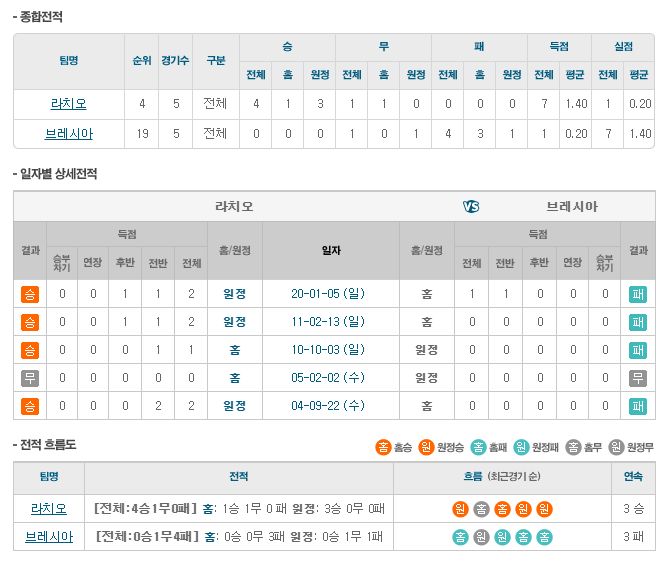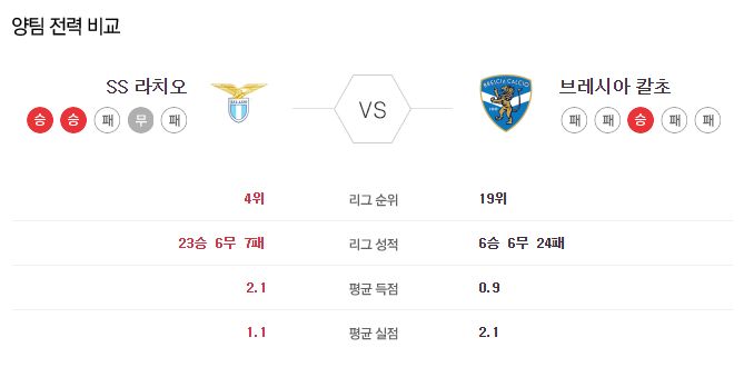 ▷라치오, 브레시아에게 3연승 중