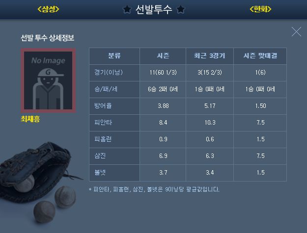 직전 경기에서 한화는 오랜만의 타선의 좋은 활약으로 승리를 거두며 긴 연패의 수렁을 탈출 했습니다. 하지만 오늘 경기에서는 직전 경기와 같은 좋은 경기력을 기대하기가 어려워 보입니다. 선발 등판하는 김민우 선수가 이번 시즌 13경기 등판해 66.1이닝을 던져 64피안타 33자책점 평균자책 4.48을 기록하며 부진한 성적을 보이고 있고 최근 등판한 두 경기에서도 좋은 활약을 못했기에 상승세의 삼성의 타선을 막기에는 역부족해 보입니다. 하지만 한화의 최근 타선에서 부진을 직전 경기를 통해 만회하며 좋은 활약을 보였기에 승리를 위해서는 이번경기도 타선의 활약을 기대해야할 것 같습니다. 직전 경기에서 김태균, 강경학, 최재훈 선수로 이어지는 타순에서 모두 3안타를 쳐내는 좋은 타격을 보였기에 중심타석에서 타격이 기대됩니다. 하지만 삼성 선발 최채흥을 상대로 좋은 타격을 보이지 못했기에 많은 득점은 어려워 보입니다.