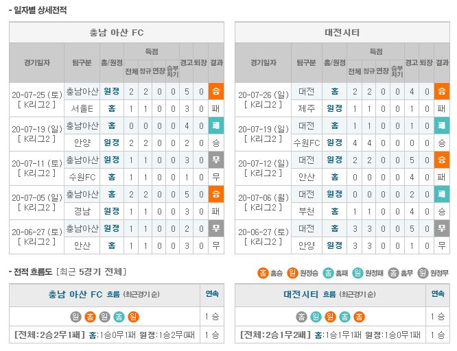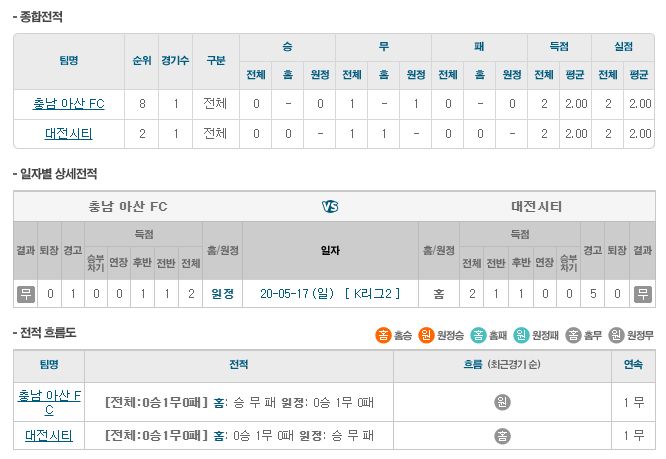 ▶대전 최근 3경기 2승 1패(5득점 5실점)