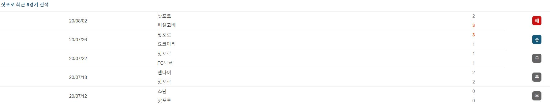 ▷삿포로, 최근 홈 5경기 1승 1무 3패 기록