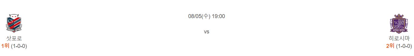 홈팀 삿포로는 최근 5경기에서 무려 3경기를 무승부를 기록했습니다. 삿포로가 최근 득점을 꾸준히 올려주고 있지만, 산프레체 히로시마가 탄탄한 수비를 바탕으로 삿포로 원정에서 잘 버뎌낼 것으로 보입니다. 삿포로의 공수 밸런스와 히로시마의 저조한 득점력을 생각한다면 0-0 내지는 1-1 정도의 저득점 양상의 무승부의 가능성이 가장 높아 보입니다.