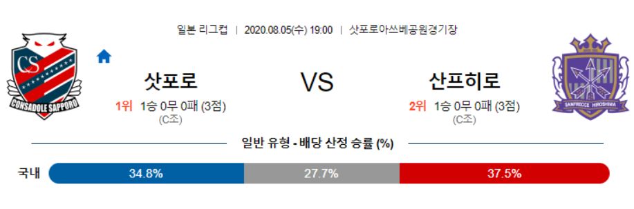 | 8월 5일 일본리그컵 C오사카 vs 우라와 분석 (0) | 2020.08.04 |