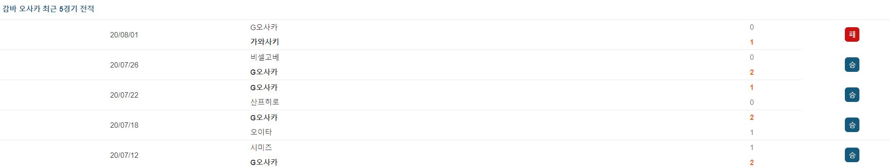 ▷감바, 최근 원정 5경기 4승 1무 기록
