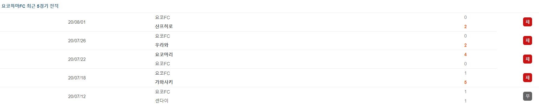 ▷요코하마, 최근 4연패 기록