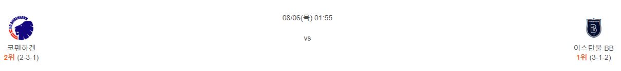 1차전을 원정에서 0-1로 패한 코펜하겐은 공격수 산토스의 징계 결장과 리그 재개 후 기대에 못 미치는 성적을 기록하며 리그 2위에 머물렀습니다. 홈에서 선제골을 넣지 못하고 먼저 실점할 경우 다득점을 해야하는 부담감을 안고 경기에 임할 것입니다. 반면 바샥셰히르는 클럽 역사상 최초 자국리그 우승을 하였고, 탄탄한 조직력으로 준수한 공수 벨런스를 바탕으로 비록 원정이지만 코펜하겐을 상대로 승산이 충분해 보입니다.