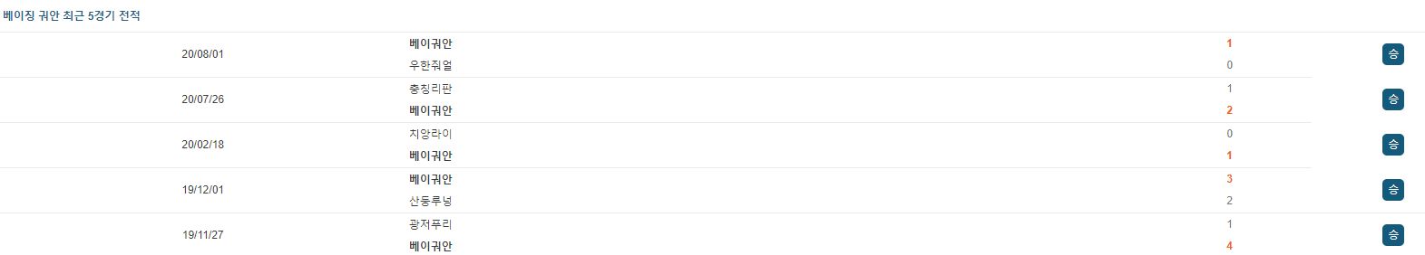 톈진은 팀의 공격을 이끌던 스트라이커 바그너가 갑작스럽게 팀을 이탈하며 이 공백을 채우기 위해 애쓰고있습니다. 1라운드에서 융하오가 1골 넣긴 했지만 역부족이었습니다. 조나탄이 복귀했던 직전 경기에서도 약체 충칭 상대로 간신히 무승부를 거두는데 만족하며 올 시즌 2경기에서 1무 1패의 저조한 성적을 기록하고 있습니다. 베이징은 지난 시즌 매우 강했던 전력에 페르난도를 완전영입하며 우승을 위한 밑그림을 완성했습니다. 지난 시즌 중반부터 활약해 경기당 1개 이상의 공격포인트를 기록한 바캄부 역시 건재합니다. 용병뿐만아니라 중국 국내 자원들의 경기력도 매우 좋은 편이기 때문에 베이징이 가진 밸런스라면 최근 수비에서 헛점을 보이고 있는 톈진 상대로 주도권을 갖고 경기를 할 것으로 예상됩니다.