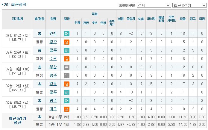 ▷광주, 원정에서 2승 1무 4패