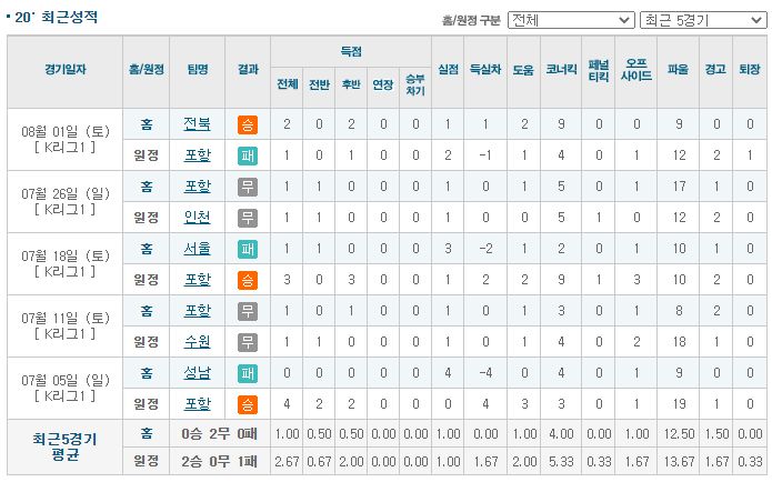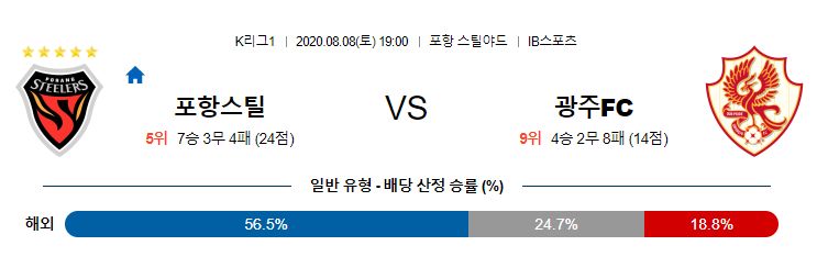 포항은 현재 리그 5위에 위치해 있습니다. 올 시즌 7승 3무 4패로 무난한 경기력을 보이고 있고 이전 경기에서 전북을 상대로 팔라시오스의 퇴장으로 2:1 패배를 기록하며 2경기 무승을 이어가고 있습니다. 전 경기에서 패배를 기록하면서 선두권과 거리가 멀어진 것은 물론 남은 일정에서도 적지 않은 타격을 받게 될 것으로 보입니다. 원정 무패의 기록도 깨짐과 동시에 핵심 공격 자원이었던 팔라시오스의 퇴장으로 출전 정지와 김완규, 이승모의 부상까지 겹치는 악재를 보였기 때문에 부상자와 공백을 보이고 있는 자리에 대책을 만들어내야 할 것으로 판단됩니다. 다만 상대의 측면 공격이 상당히 활발한 모습을 보이고 있기 때문에 부상자의 공백을 매우지 못한다면 이번 경기에서 포항은 근소한 차이로 패배를 기록할 것으로 예상이 됩니다.
