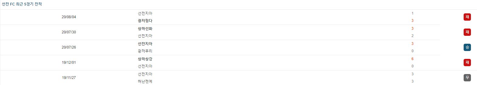 ▷선전, 올 시즌 1승 0무 2패