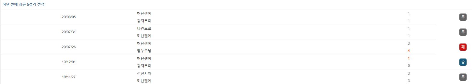 ▷허난, 올 시즌 0승 2무 1패