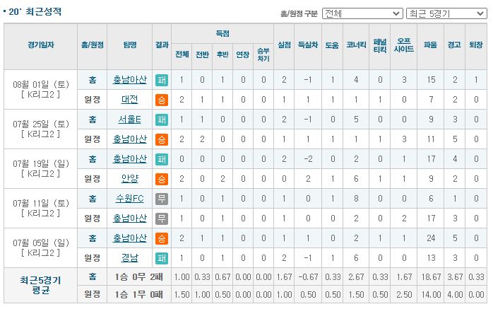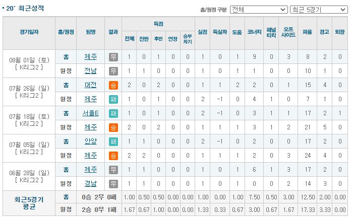 제주는 시즌 초반 주춤했습니다. 최근 10경기 7승 2무 1패를 기록하며 점차 경기력을 회복해가고있습니다. 발렌티노스 복귀 이후에는 수비진이 안정감을 되찾으며 리그 수준을 상회하는 경기력을 유지하고있습니다. 제주는 2부리그 팀들 상대로 무실점으로 경기를 끝낼 수 있는 힘을 갖추고있고, 최근 10경기 연속 득점에 성공하며 폭발력이 떨어지더라도 꾸준한 득점력을 보이고있습니다. 아산의 전력이 리그 상위권 팀들과 상대하기에 부족하다보니 대부분의 경기에서 주도권을 내주고있으며, 사실상 텐백 수비와 빠른 역습으로 버티고있지만 그 한계점이 보이고 있습니다. 그래도 최근 짠물 디펜스가 잘 유지되고있고, 헬퀴스트 복귀 이후에는 반격하는 힘도 생겼습니다. 아산은 원정에서 1승 5무 0패로 아직까지 패하지않았을 정도로 원정에서의 경기 결과가가 좋은 팀으로, 제주와 같이 상대를 앞도하는 힘이 부족한 팀을 상대로는 다시 한 번 패배를 면할 수 있을 것으로 보입니다. 이번 경기를 통해 무야키치가 징계로부터 돌아오기 때문에, 한 골 이상의 득점 정도는 충분히 가능해보입니다.