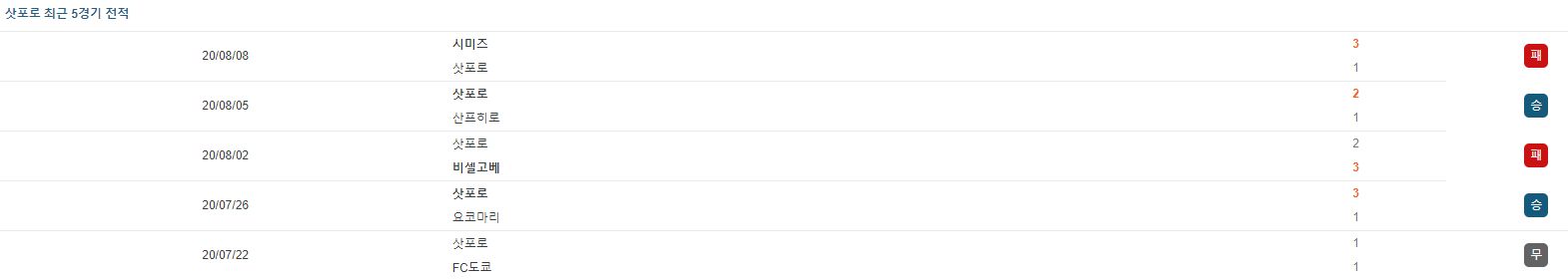 | 8월 12일 일본리그컵 산프히로 vs 사간도스 분석 (0) | 2020.08.11 |