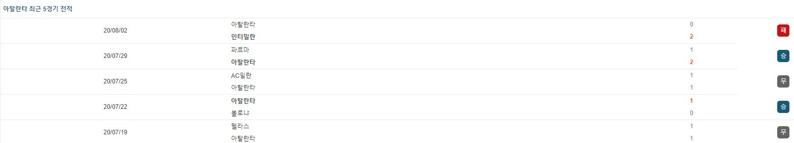 ▷아탈란타, 재개 이후 13경기 9승 3무 1패