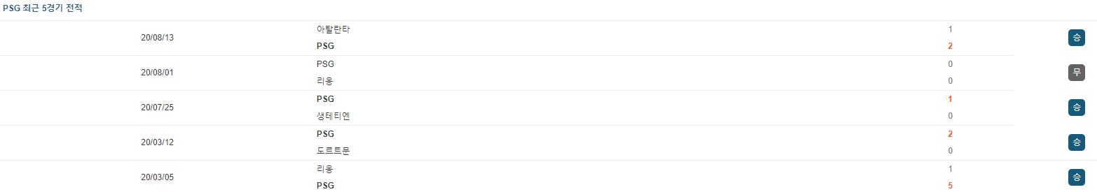 ▷PSG 원정 성적 : 13전 10승 1무 2패 (원정 무실점 38%, 원정 무득점 0%)
