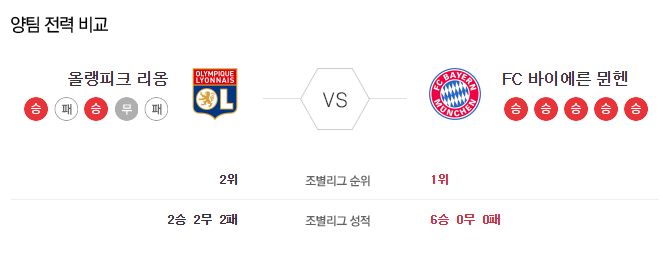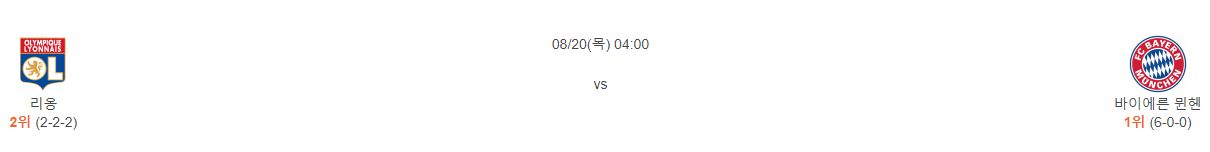 리옹은 기본전력 규모로 본다면 챔피언스리그에 진출한 팀중 하위권에 속합니다. 올 시즌 리그에서도 썩 좋은 성적을 내지는 못했습니다. 하지만 앞선 8강에서 우승후보 맨시티를 격파하고 4강에 진출했습니다. 맨시티전에는 맨시티의 다소 리스크있는 전술이 실패로 돌아가면서 리옹의 날카로운 역습이 통하는 경기였습니다. 하지만 이번 뮌헨전에는 역습을 통해 반격을 노리는 전술 자체가 성립되기 어려울 정도로 뮌헨의 일방적인 공격전개가 다득점으로 연결될 가능성이 높아보입니다. 뮌헨은 재개 후 챔스 일정에서도 첼시와 바르셀로나 상대로 도합 12골을 넣는 놀라운 경기력을 보이고 있으며 특히 지난 바르셀로나와의 8강에서 무려 8:2로 챔피언스리그 역사의 한페이지를 장식할만한 스코어로 4강에 진출했습니다. 리옹의 몇 차례 역습에 실점할 수는 있겠지만 이번경기 승패에 있어서는 변수가 되지 않을 것입니다.