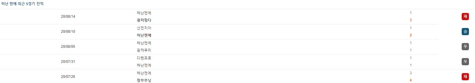 산둥의 문제점은 펠라이니를 이용한 단조로운 공격패턴이 반복되고있는것입니다. 이러한 전술이 통하는 팀을 상대로는 강력한 무기로 활용할 수 있지만 그렇지않을 때는 단조로운 공격패턴으로 답답한 경기력이 나오고있습니다. 다행히도 펠레가 지난 라운드부터 선발로 나서기 시작하며 좀 더 공격의 다양성을 확보해주고 있습니다. 허난은 지난 시즌 좋은 지도력을 인정받은 왕 바오샹 감독이 사임하며 변수가 생긴 상황입니다. 그럼에도 장수 상대로 3-4로 마지막까지 접전을 펼쳤습니다. 헨리크 두라도가 멀티골을 넣으며 여전히 좋은 모습을 보이고 있습니다. 직전 선전전에는 상대으로 인해 숫적 우세로 2-1 승리를 했습니다. 허난에 여러가지 긍정적 이슈가 있긴 했지만, 산둥 역시 견고한 수비를 바탕으로 최근 에버그란데와 선전 등에 무실점 승리를 따내며 공수 밸런스가 잘 잡힌 경기력을 보여주고있습니다. 두라도와 카랑가 등 허난 공격의 핵심인 용병 자원들의 개인전술이 득점까지 연결되기 쉽지않은 경기입니다.