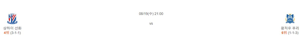 지난 시즌 김신욱을 영입하며 큰 재미를 보았던 선화는 앞선 4경기에서 2승 1무 1패로 나쁘지않은 흐름을 보였습니다. 직전 경기에서 핵심 스트라이커 김신욱이 부상당하며 공격에 비상이 걸렸습니다. 그럼에도 직전 장수와의 경기에서 상대의 총공세를 잘 막아내며 시즌 3승째를 챙겼습니다. 광저우 푸리는 리그에서 가장 전력이 떨어지는 팀 중 하나입니다. 그래도 직전 라운드에서 자하비와 사바의 조합이 돌아오면서 다롄 상대로 시즌 첫 승리를 만들었습니다. 김신욱이 빠져있는 선화는 상대를 압도하는 힘이 부족하지만, 모레노와 엘 샤라위등 유럽무대에서 이름을 날린 선수들의 최근 폼이 꽤 올라온 상황입니다. 푸리는 자하비가 분전하고있지만, 사바가 아직까지 몸상태가 최상은 아니기 때문에 교체출전하고있습니다. 푸리는 역습이 주 전술이기 때문에 선제실점을 허용한다면 반격이 어려울 것으로 보입니다.
