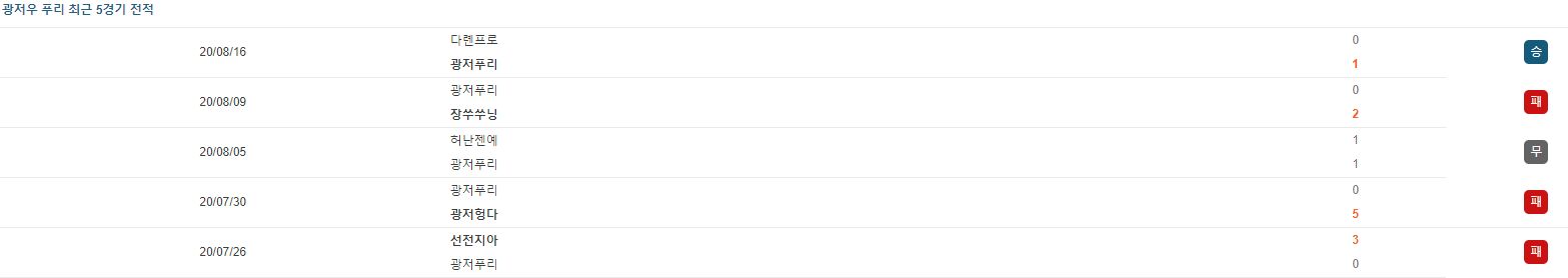 ▷광저우 푸리, 올 시즌 1승 1무 3패