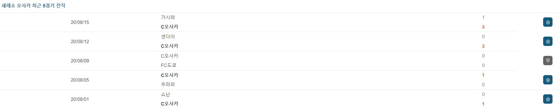 ▷세레소, 리그 10경기 6승 3무 1패