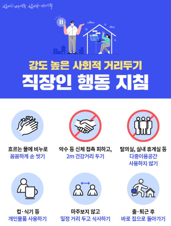 5. 사람간 2m 이상의 코로나19 안전 거리를 유지합니다.